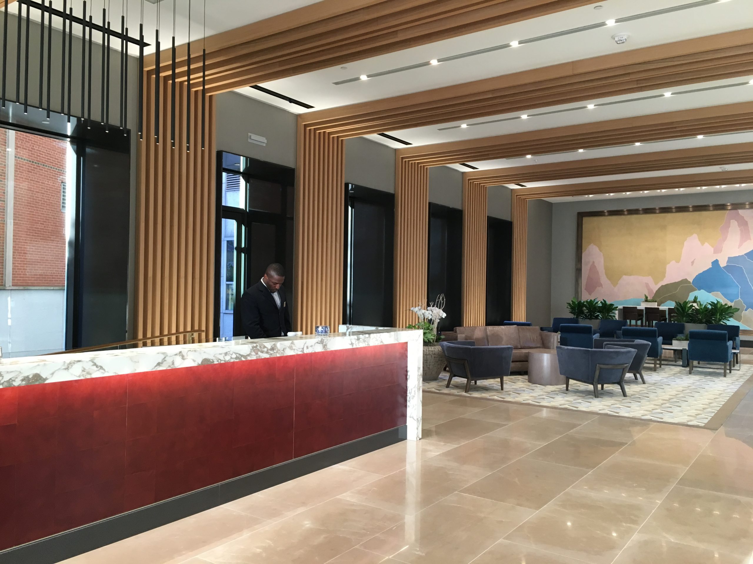 Scope: Modifications of first floor to create a new entrance to building. New lobby was constructed with decorative LED lights, enhanced security desk, sleek new turnstiles, restrooms and an AV wall. During the two-phase construction project, J&M Brown demoed old restaurant spaces, installed new distribution panels, and coordinated hundreds of feet of conduit runs in garage. Additionally, J&M Brown’s low-voltage division, SpectrumIT, performed the security scope for this project.
