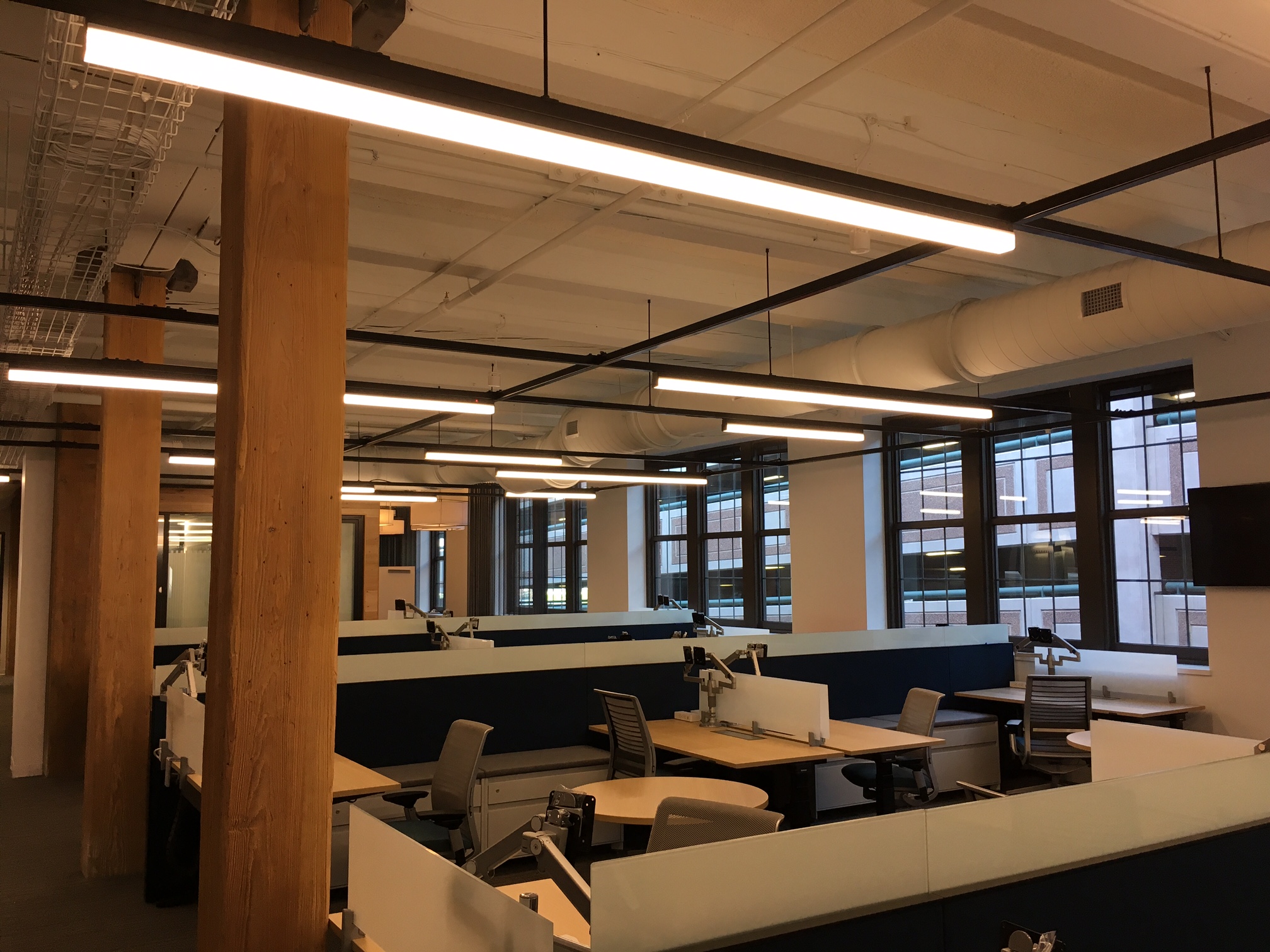 Scope: J&M Brown was responsible for the complete demolition and electrical construction of Red Hat’s new office in the Seaport District. The exposed brick and wood space is home to Red Hat Open Innovations Labs, the Engineering Lab and a state-of-the-art Executive Briefing Center. Traversing two full floors, the electrical scope included 2,000′ of cable tray, 2,200′ of custom black, powder-coated grid to hang fixtures and relocating the entire electric room and dividend it into two new locations. J&M Brown’s low-voltage division, SpectrumIT, installed the Teldata, Security and AV for a coordinated effort.